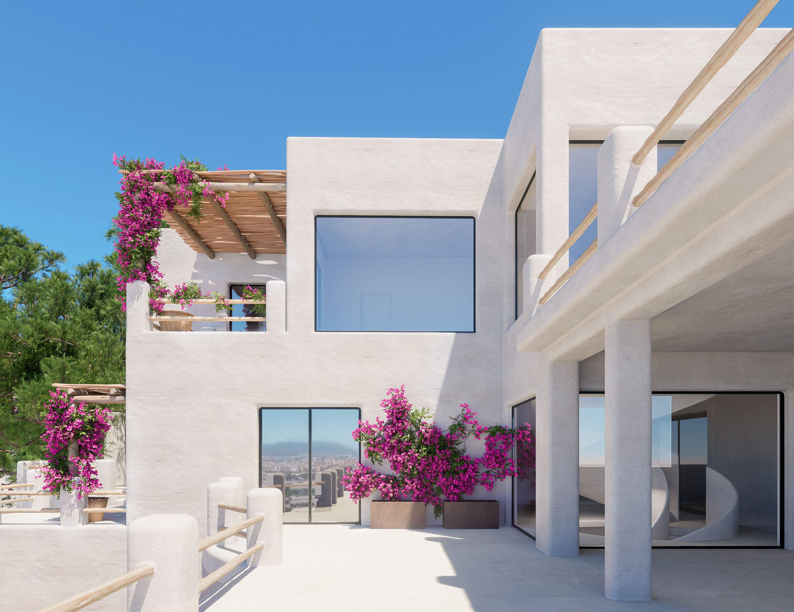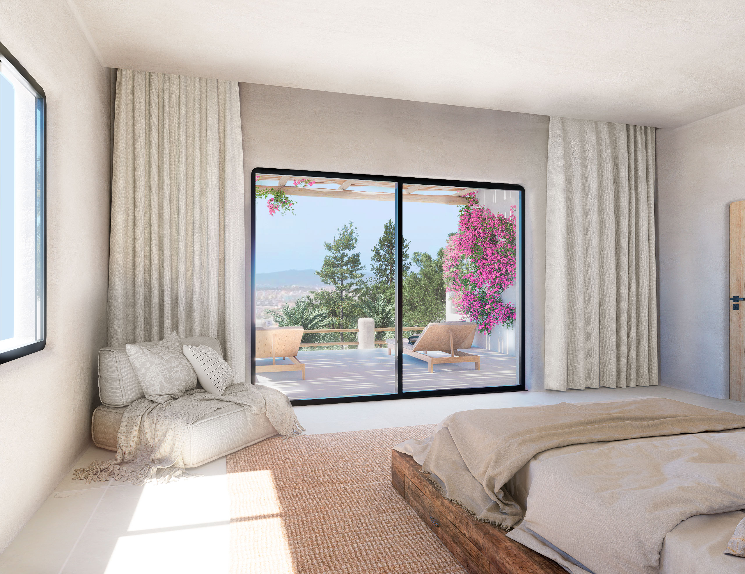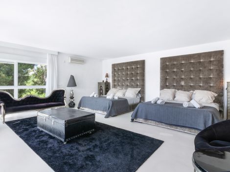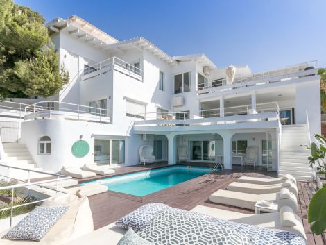 Ca des Mirador – Exceptional Private Villa with Panoramic ViewsLocated in the exclusive gated community of Can Furnet (Jesús – Santa Eulalia del Río), Ca des Mirador sits in an elevated position offering complete privacy with no direct neighbors. The property is just 5 minutes from the charming village of Jesús and only 10 minutes from Ibiza Town, Ibiza Nueva Marina, and Marina Botafoch.This impressive Mediterranean-style villa benefits from 24/7 security and private access, being the last house in the urbanization — completely hidden from view and ensuring total discretion.Key Features: