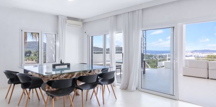 Stunning views of the sea, surrounding mountains, Ibiza Town, Marina Botafoch, and distant Formentera