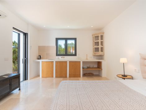 Villa Alba is designed for hosting. An annex by the pool currently used as an office, offers a quiet bedroom with sea views. On the lower level, two fully independent studios with their own kitchenettes and living areas provide the ultimate privacy for guests or staff.