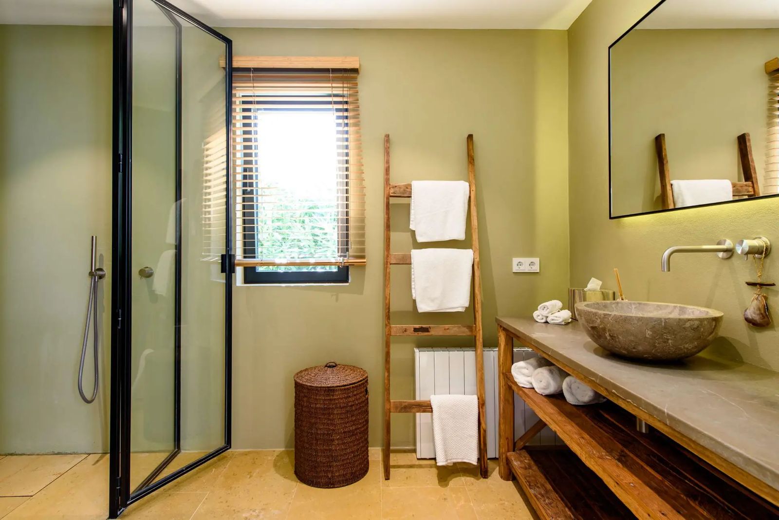 Located next to the pool, it offers three additional en-suite bedrooms. Two are situated on the ground floor with direct access to the terrace, while the third is on the upper floor and includes a private fridge and balcony.
