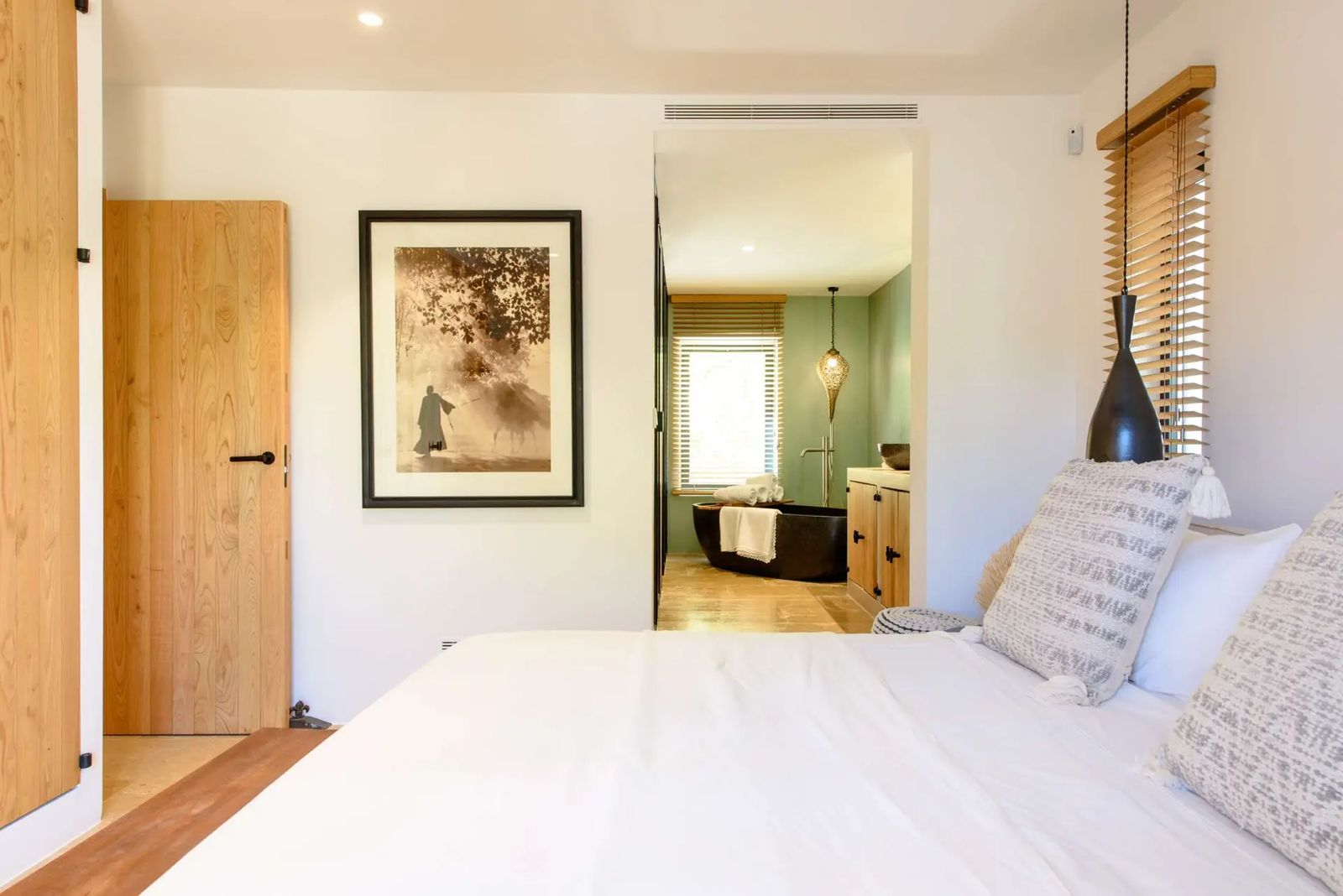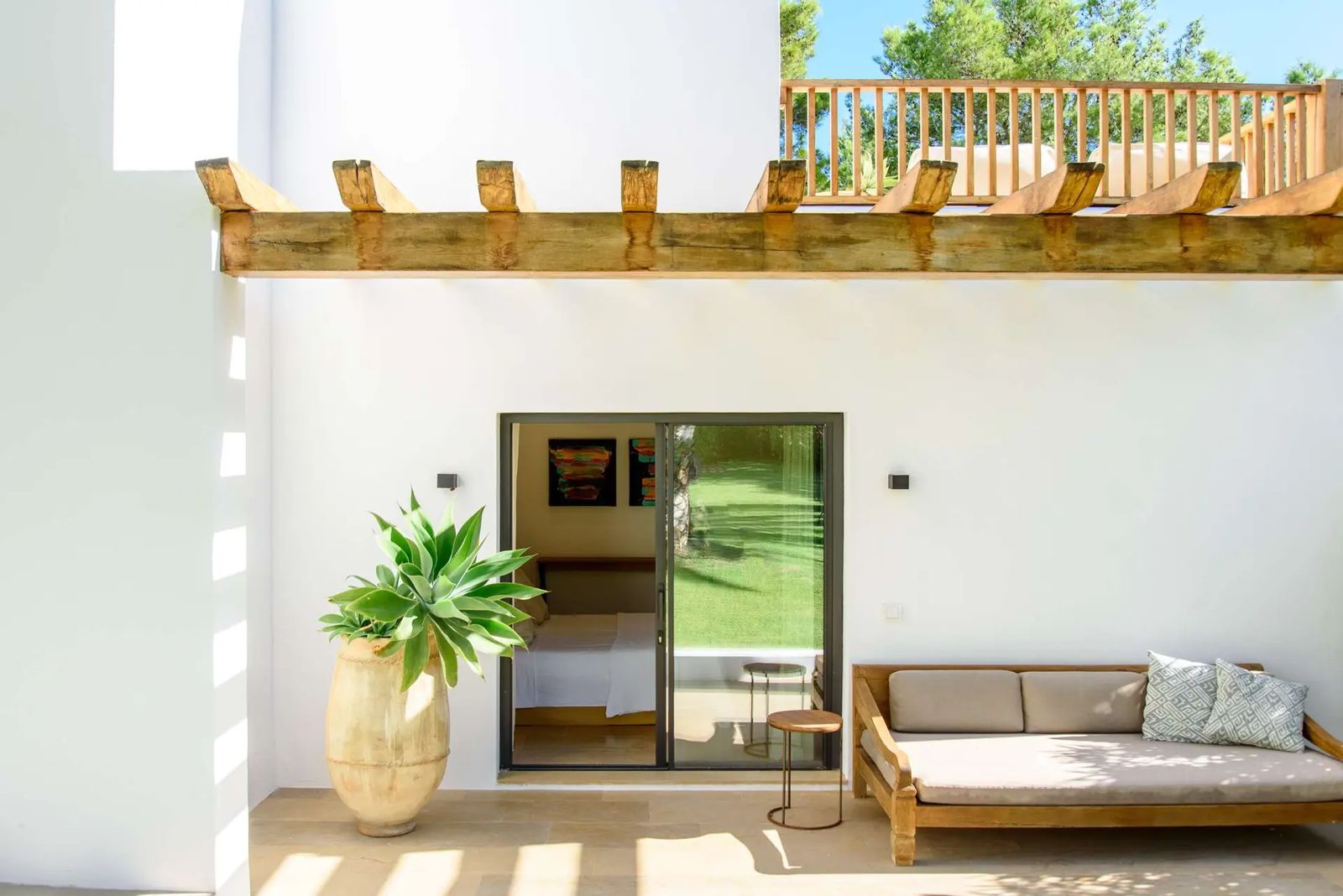 Can Rumani is a beautifully renovated villa that blends traditional finca elements, such as authentic wooden beams, with refined contemporary design. Located just 2 km from San José and within 10 km of some of Ibiza’s most renowned beaches, including Cala Bassa and Cala Tarida, this private estate offers a five-star living experience enhanced by advanced home automation.